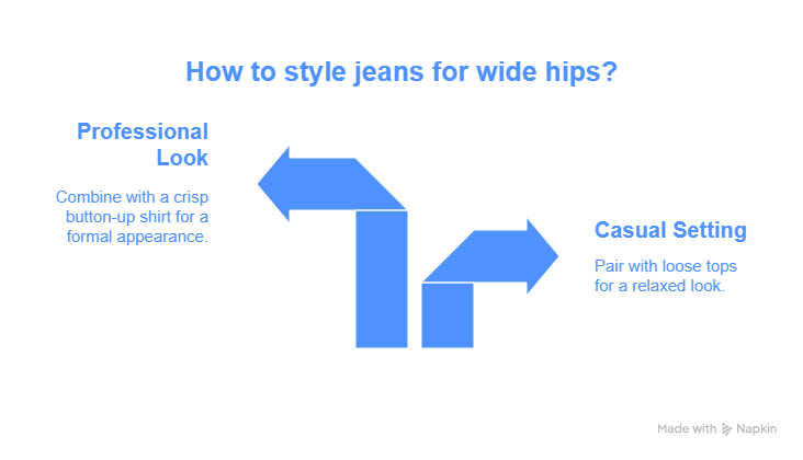 Styling jeans for wide hips can be fun! Here are some ideas to rock both casual and professional looks:
