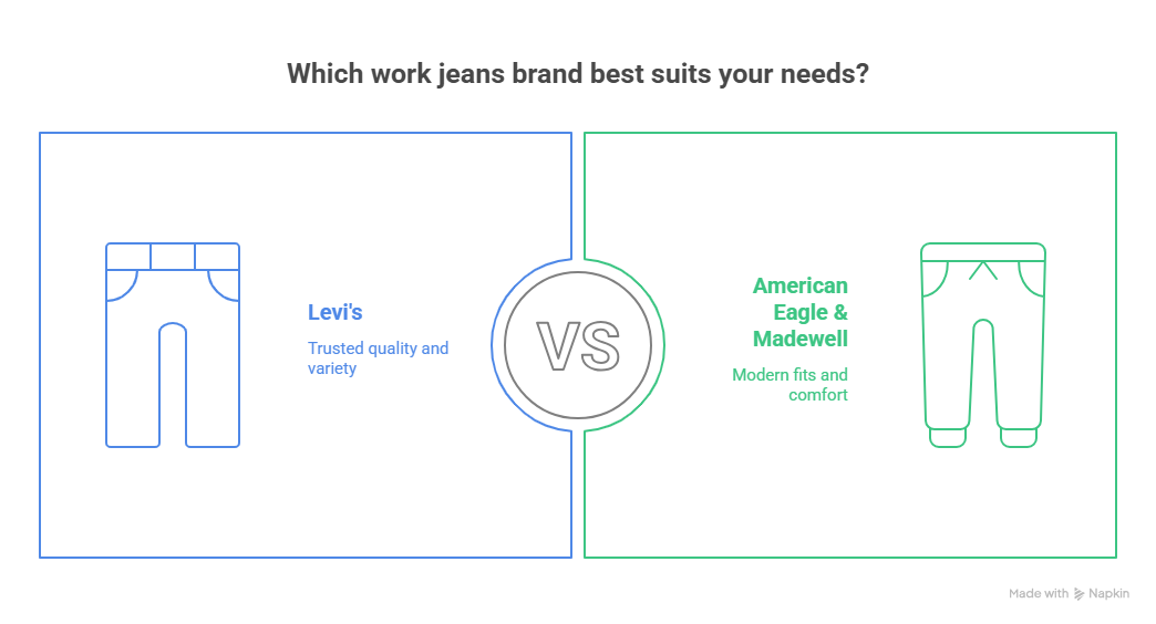 Levi’s: Trusted name with many options. American Eagle: Modern fits for diverse styles. Madewell: Combines comfort with fashion.