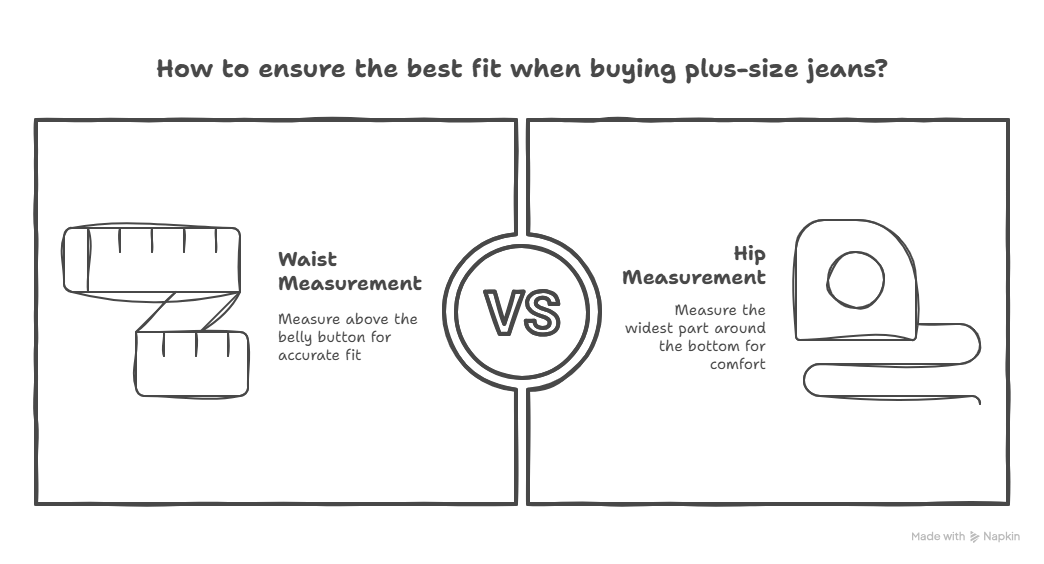 Getting the right fit for plus-size jeans can be as delightful as finding a unicorn at a donut shop. Accurate measurements are your best friend here. Grab a measuring tape, stand tall, and take your waist and hip measurements. Take note: waist is above the belly button, while hips are widest around the bottom.