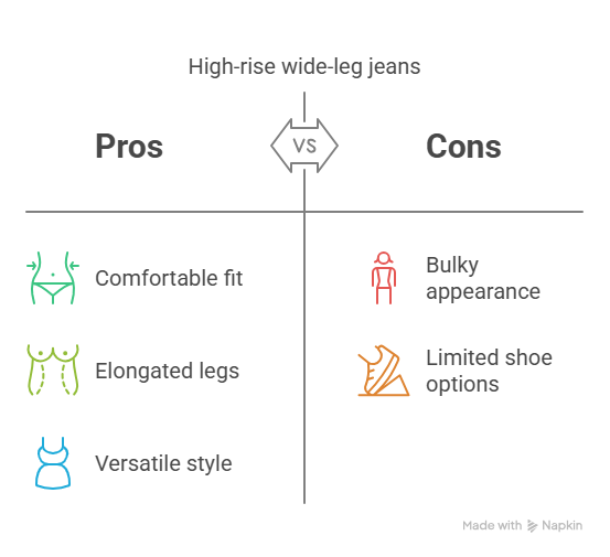 High-rise wide-leg jeans offer a relaxed fit and stylish look. They suit many body types and events.