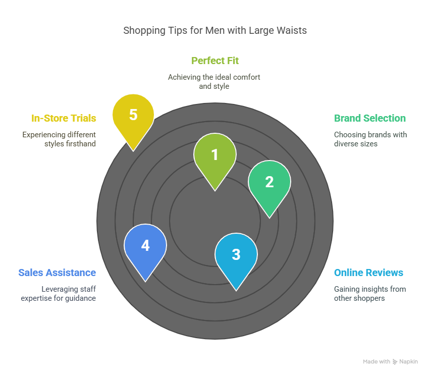 Choosing the right jeans makes a difference. Men with large waists have options to find the perfect fit. Shopping online or in-store? Both have their perks.