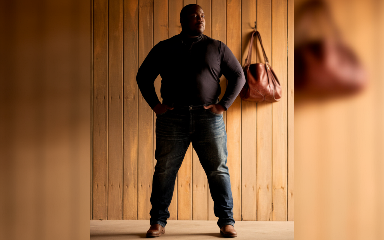 Men with large waists can look stylish in jeans by choosing the right outfits. Wear a shirt that fits well and is a bit long. This helps cover the waist area nicely. Add a jacket or sweater to create layers. Choose shoes that match the color of the shirt for a complete look.