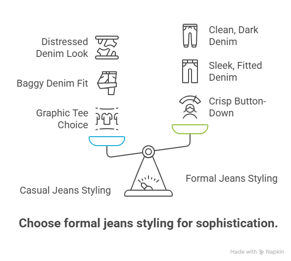 “Are jeans acceptable for formal occasions?” Well, they can be, if styled correctly! Stick to clean, dark denim and avoid flashy or worn-out looks. According to style experts, quality matters, too.