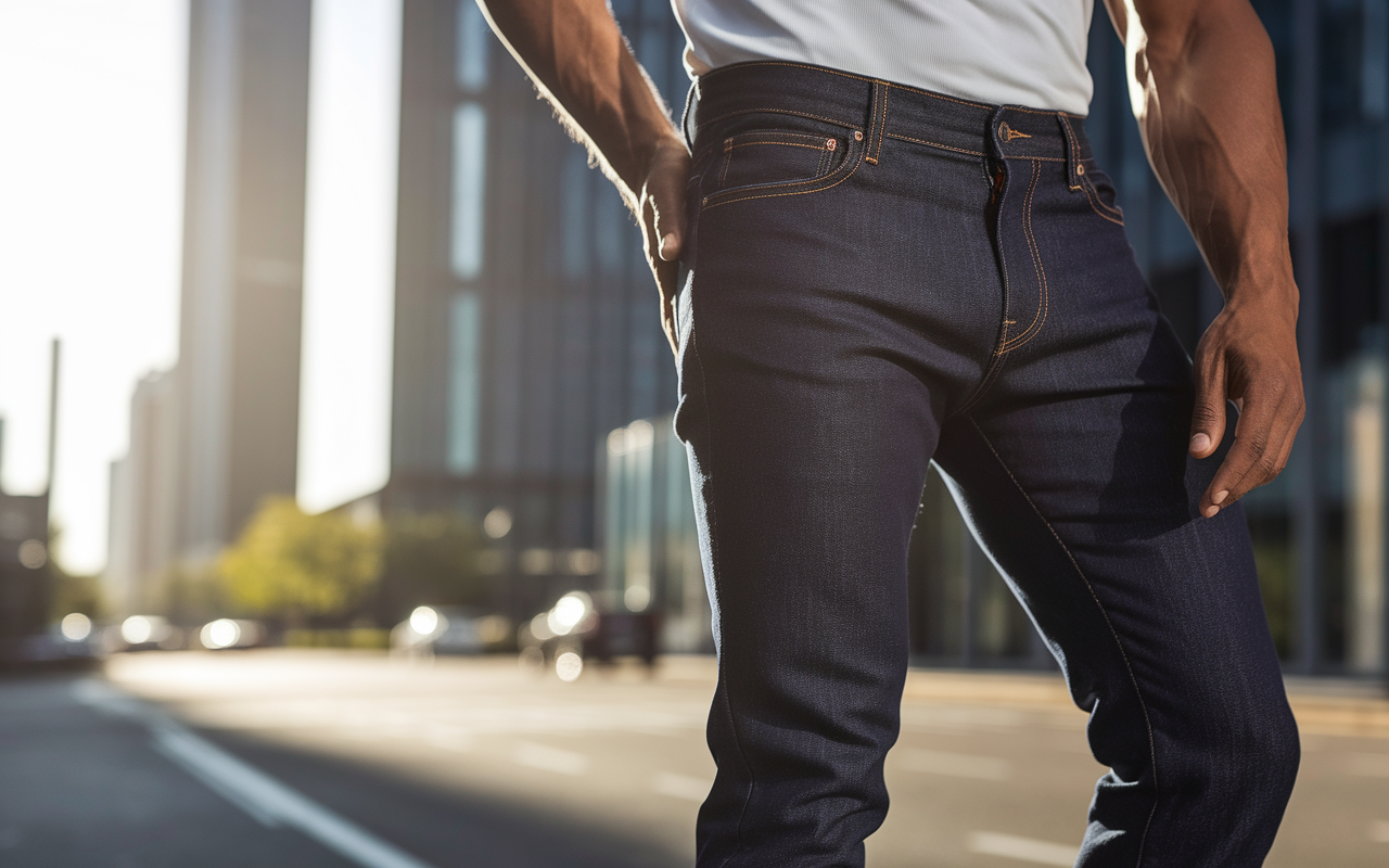 Finding the right size for men’s slim fit jeans is like solving a fun puzzle. Start with the waist. Use a tape measure to check it. Next, wrap it around the thickest part of your thighs. This way, jeans aren’t too tight. Length is next, measure from your hip to your ankle. When trying on, do a short squat. This checks comfort. If the jeans move with ease, it’s a fit!