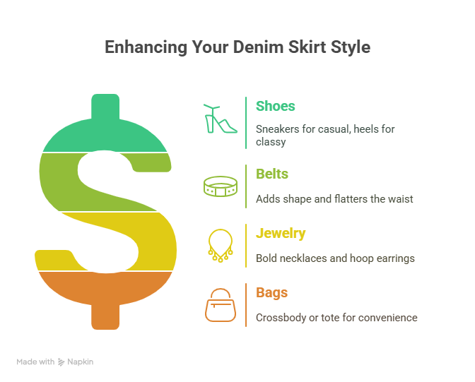 For those who ask, “Why accessories matter?” They bring out your personal flair and make the outfit truly yours. A well-accessorized denim skirt means you’re ready for anything—from coffee dates to impromptu adventures!
