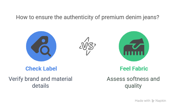 Always check the stitching and logos. They should be neat and consistent. Avoid jeans that look cheap or have uneven seams.